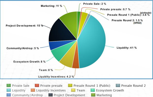 The TOKENOMICS distributed according to the long-term product development goals are as follows: